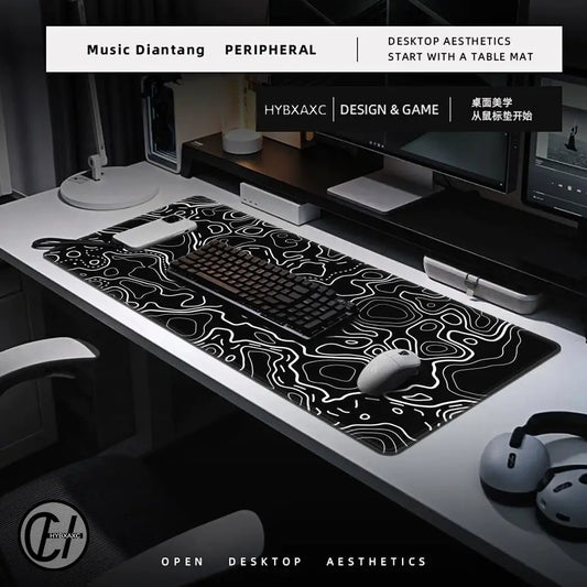 1200x600 Black White Topographic Map Mousepad Computer Keyboard Pad Mouse Mat Gamer Office Carpet Table Mat Desktop Mouse Pad