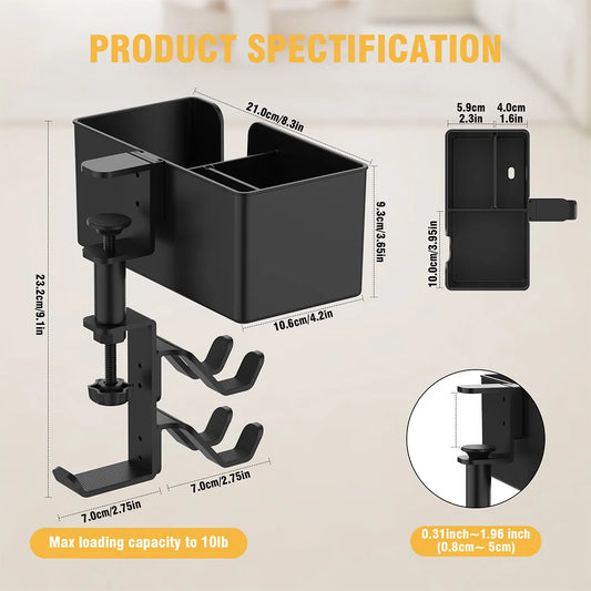 5-in-1 PC Gaming Headphone Stand Adjustable Save Space Rotation Desk-Sided Clamp Headset Support Earphone Holder