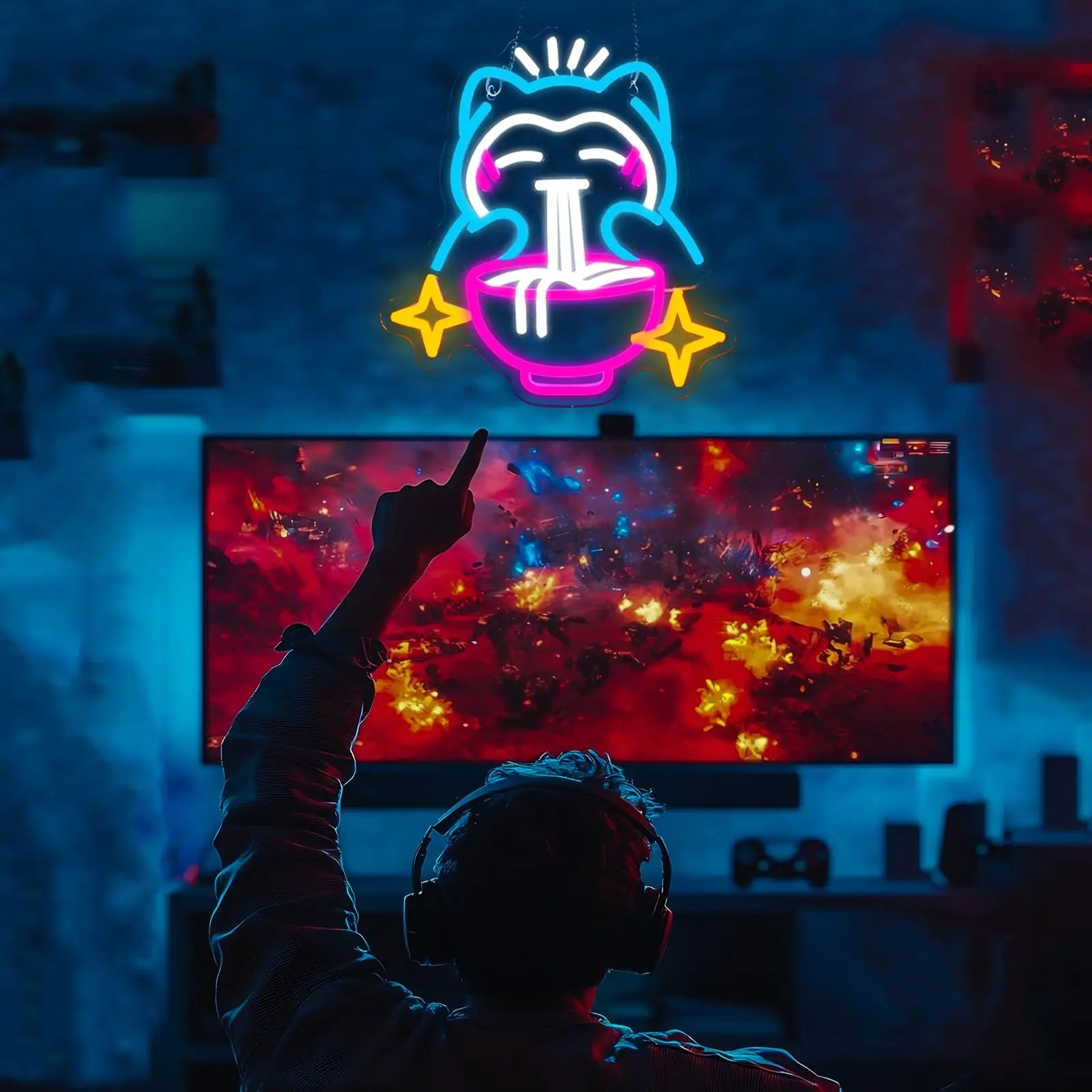 LED Ramen Neon Light - Cute Bear Noodle Neon Sign, Dimmable Japanese Wall Decor for Gaming Room, Restaurants, Bars, Kids Bedroom